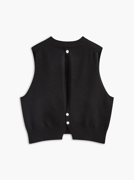 Çiçek İşlemeli Düğmeli Örgü Yelek
