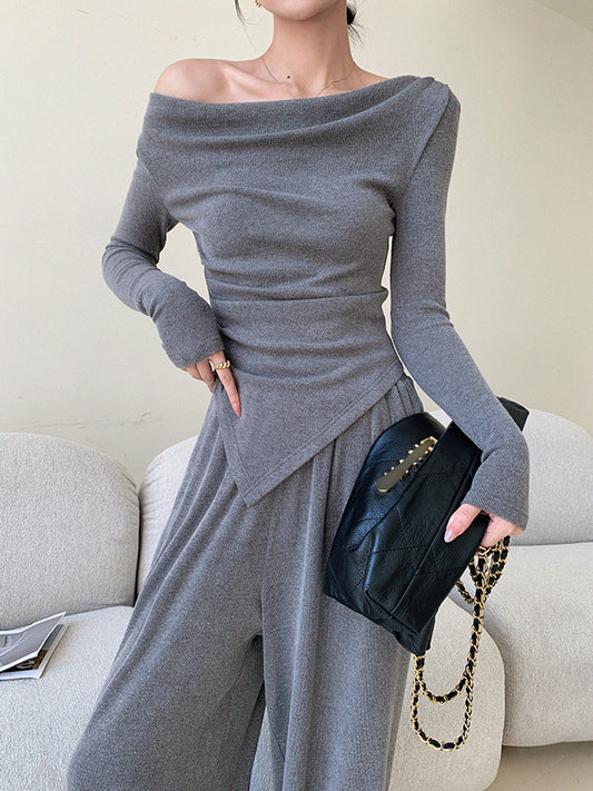 Düz Asimetrik Drapeli Pantolon Takımı