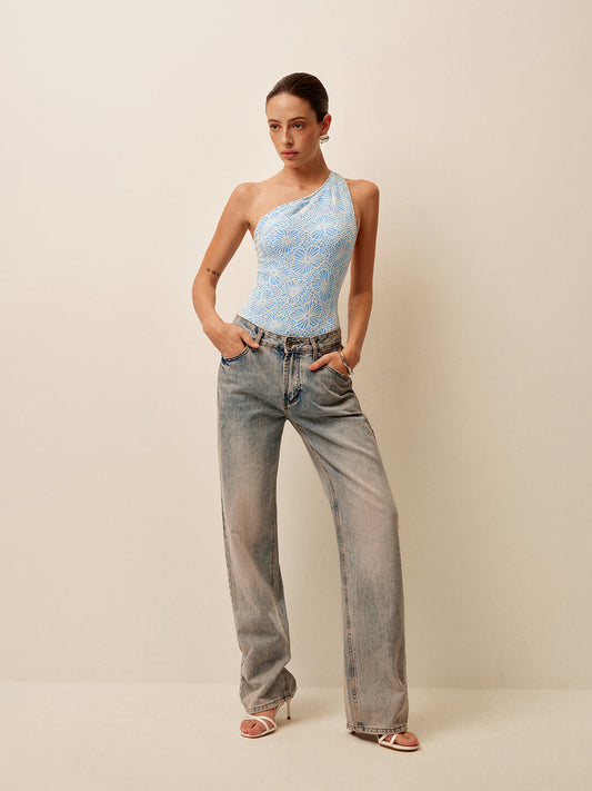 Asimetrik Dantel Kesik Sırt Tek Parça