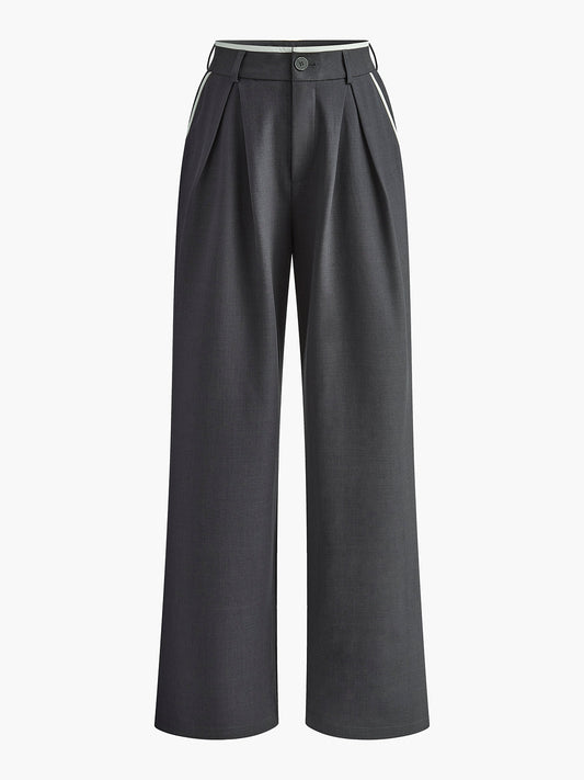 Kontrast Kesimli Pileli Drapeli Pantolon