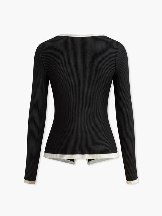 Kontrast Trim Açık Sırtlı Örgü Üst