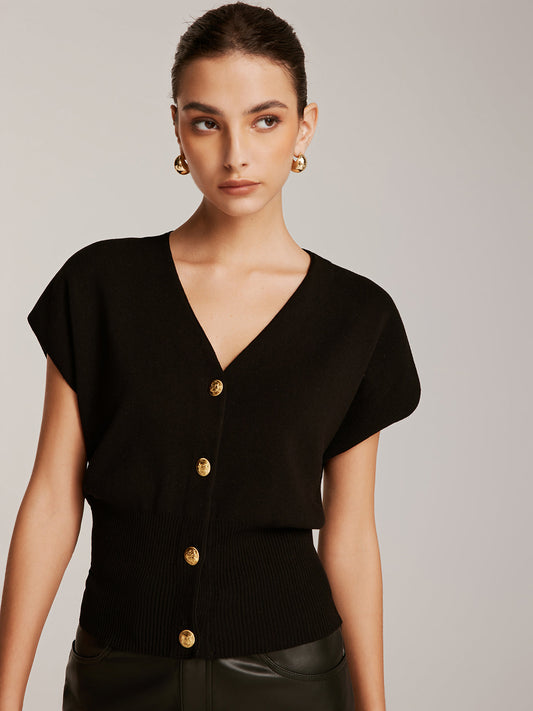 Metal Detay V Yaka Bölünmüş Kazak Yelek