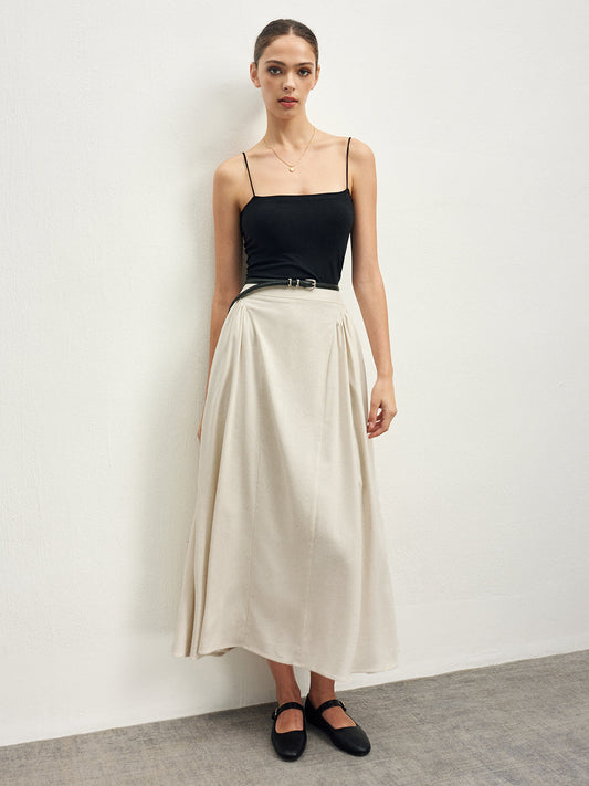 Pamuk Ve Keten Dalgalı Kesim Midi Etek