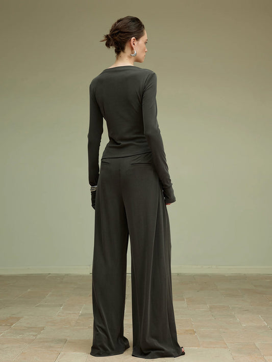 Pileli Yüksek Bel Geniş Paça Pantolon