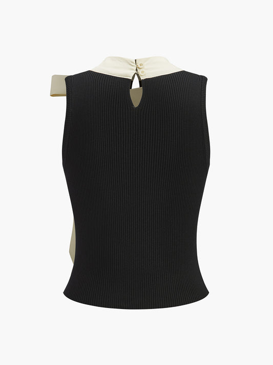 Renk Bloklu Örme Bağcıklı Yelek