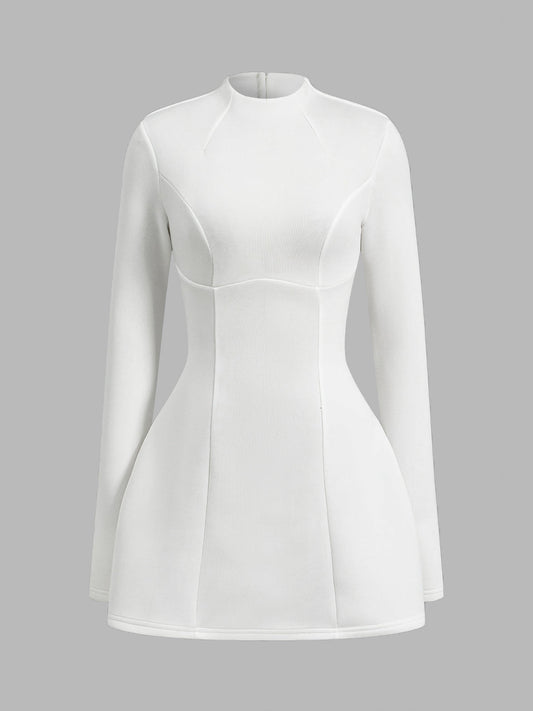 Sırtı Açık Fiyonklu Saten Uzun Kollu Kısa Elbise