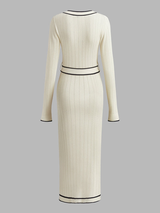 V Yaka Halter Bölünmüş Örgü Elbise