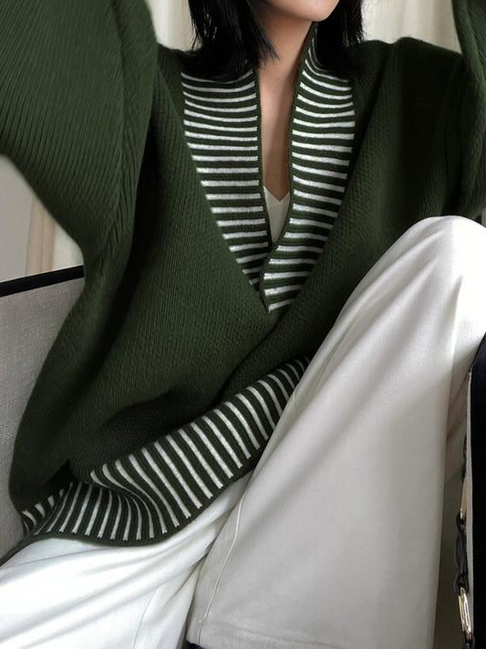 V Yaka İki Renkli Çizgili Kazak
