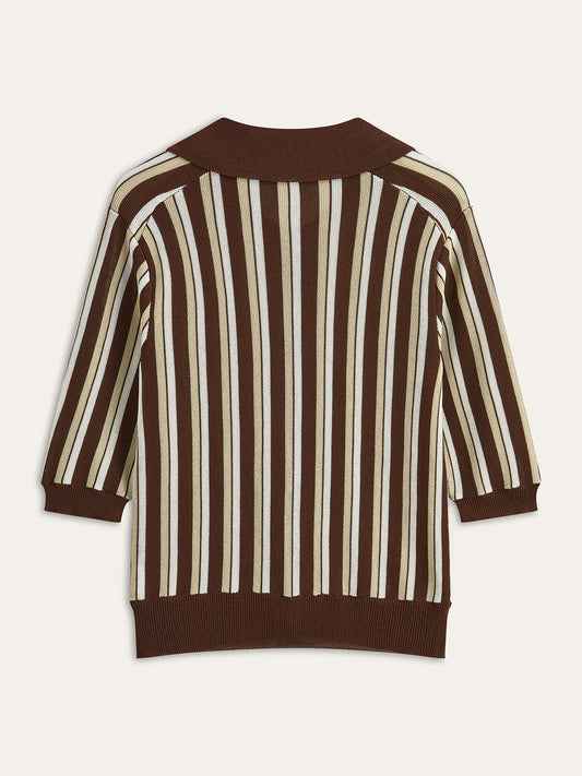 Çizgili Düğmeli Örgü Üst