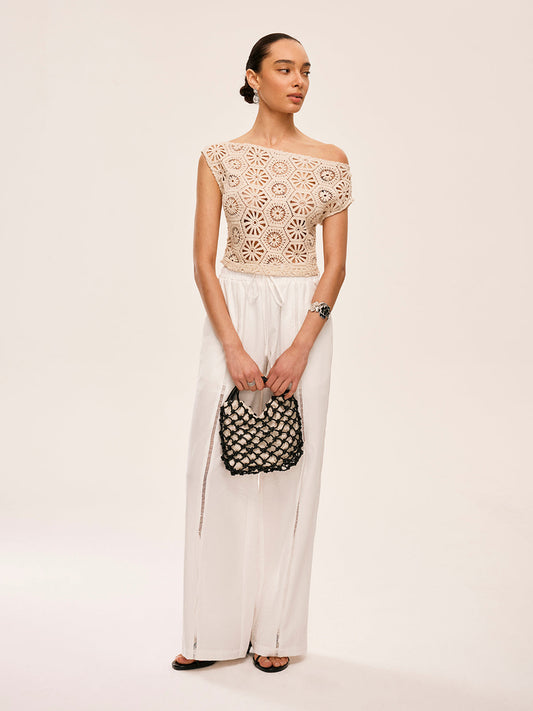 Asimetrik Omuz Açık Yarı Şeffaf Tığ İşi Üst