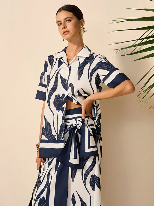 Çiçek Desenli Uzun Kollu Düğmeli Gömlek