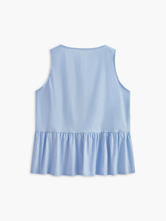 Dik Yaka Düğmeli Volanlı Peplum Bluz