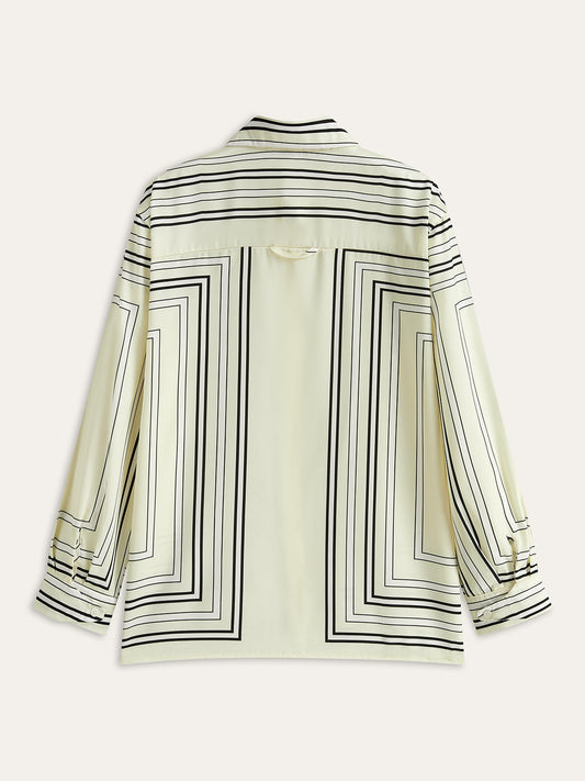 Çizgili Sırtı Açık Fiyonklu Gömlek