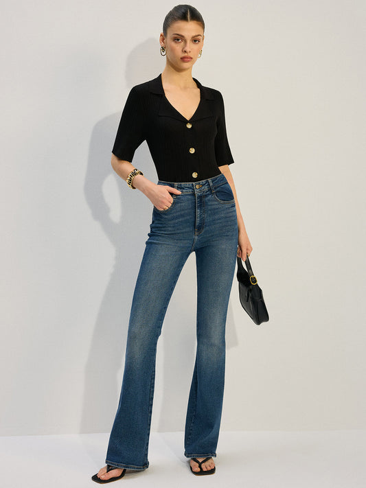 2'Si 1 Arada Düğmeli Jersey Bluz