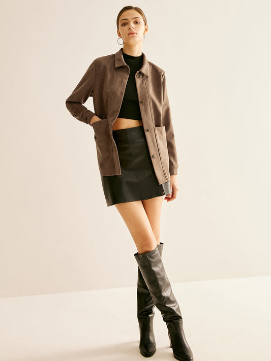 Suni Deri Düğmeli Polo Gömlek Kemersiz