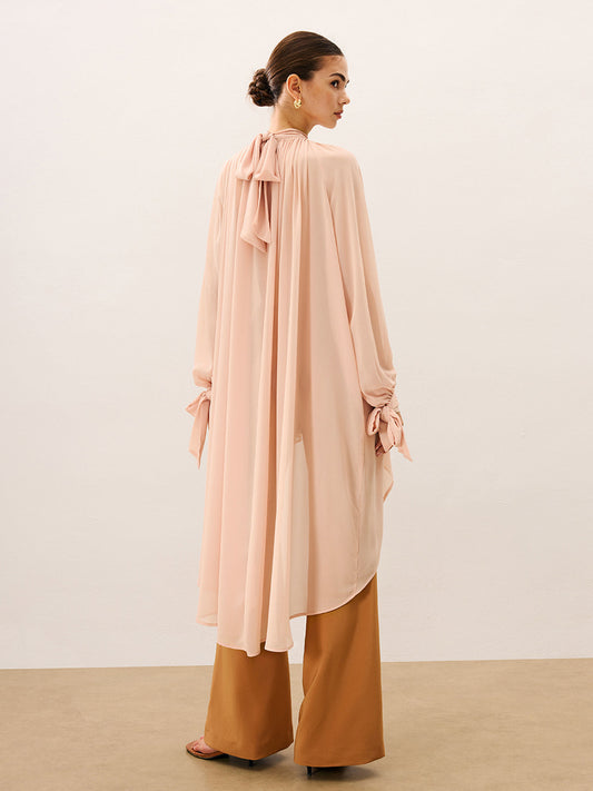 Kontrast Kravatlı Yarı Şeffaf Fırfırlı Detaylı Bluz