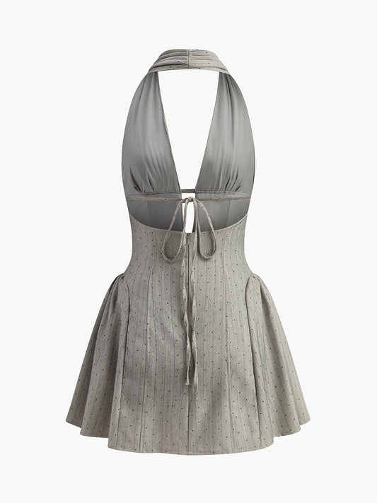 Halter Yaka Kesik Sırtı Açık Örgü Elbise