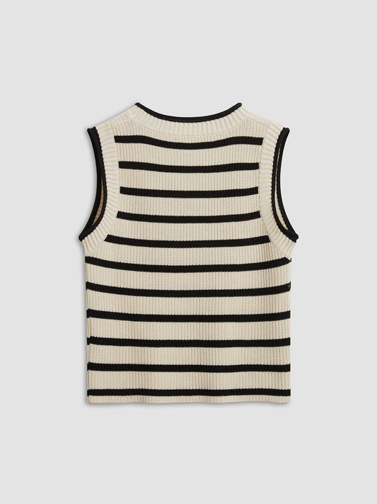 Kontrast Trim Fiyonklu Kırpılmış Kazak Yelek
