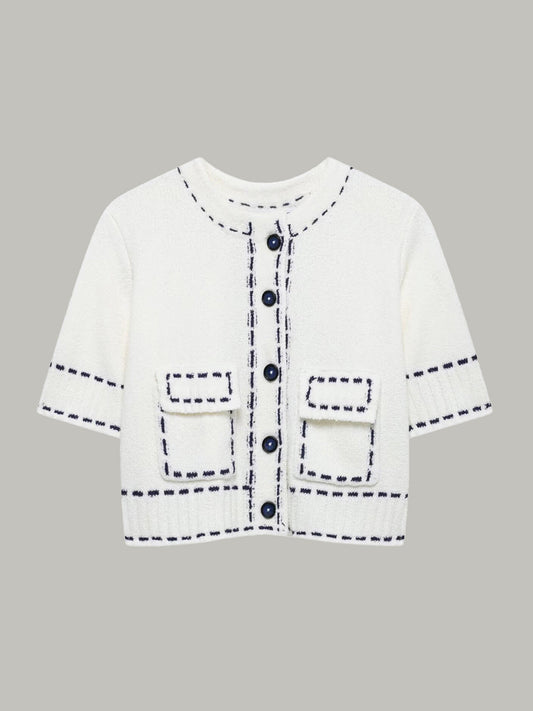 Kontrast Dikişli Kısa Kollu Kırpılmış Hırka