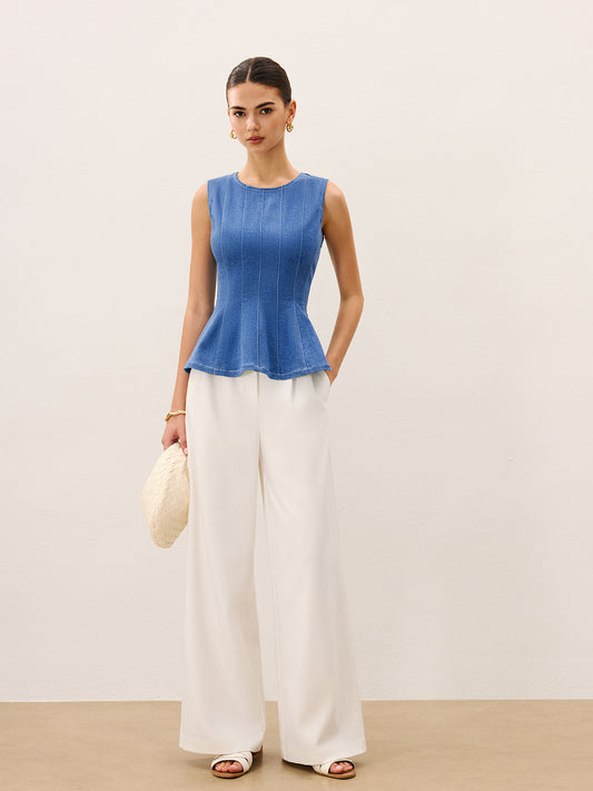 Yüksek Bel Cep Detaylı Geniş Paça Pantolon