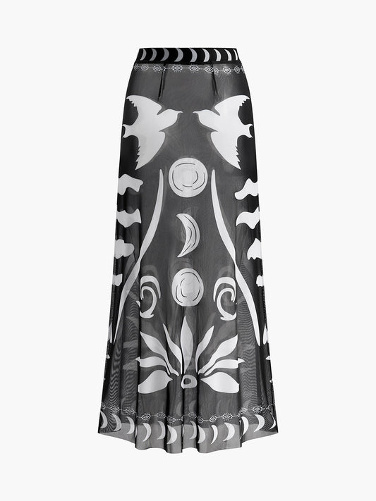 Şeffaf Baskılı File Plaj Örtüsü Etek
