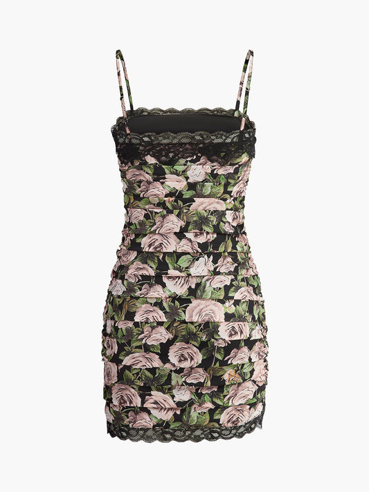 Çiçekli Dantel Kenarlı Kıvrımlı Elbise