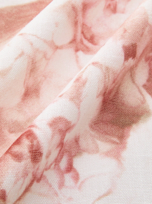Saten Çiçek Desenli Yan Yırtmaçlı Elbise