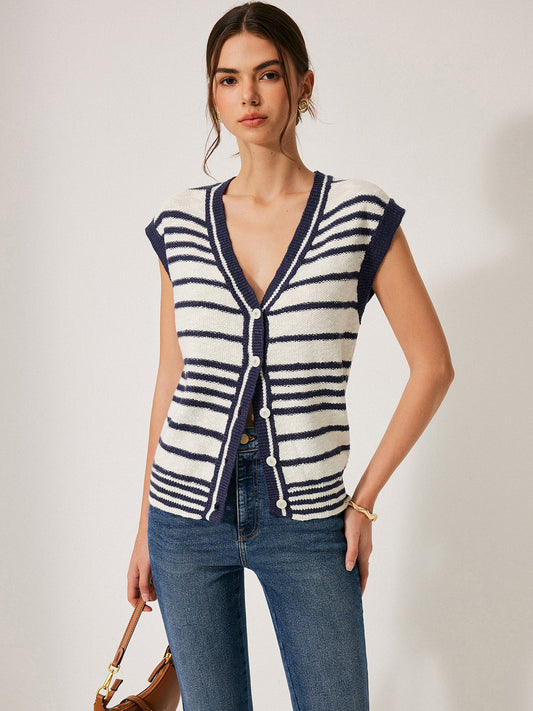 Yarı Şeffaf Yivli V Yaka Örgü Yelek