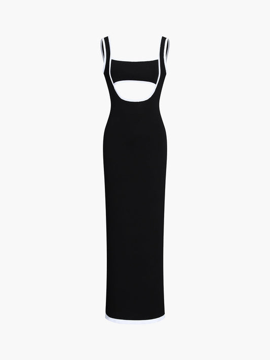 Pamuklu Kontrast Kesim Sırt Bağlamalı Elbise