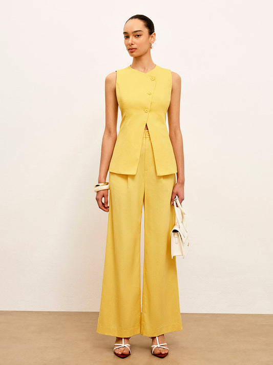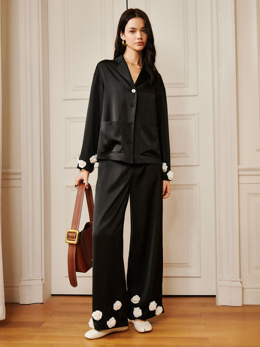 İşlemeli Yüksek Bel Geniş Paça Pantolon