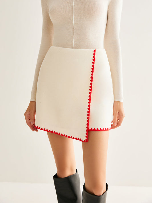 Kontrast Trim Ön Bağcıklı Etek Takımı
