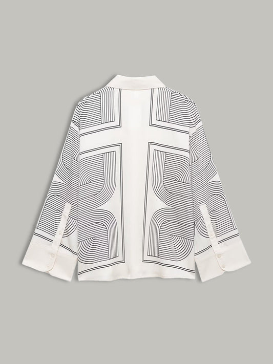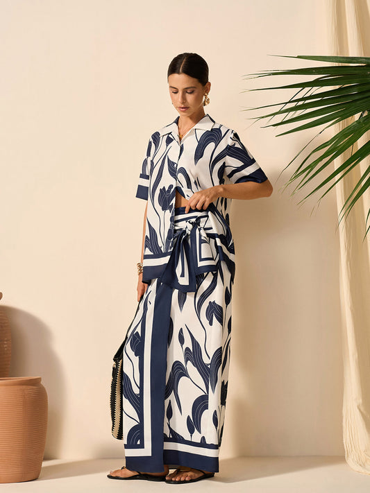 Orta Bel Geometrik Desenli Geniş Paça Pantolon
