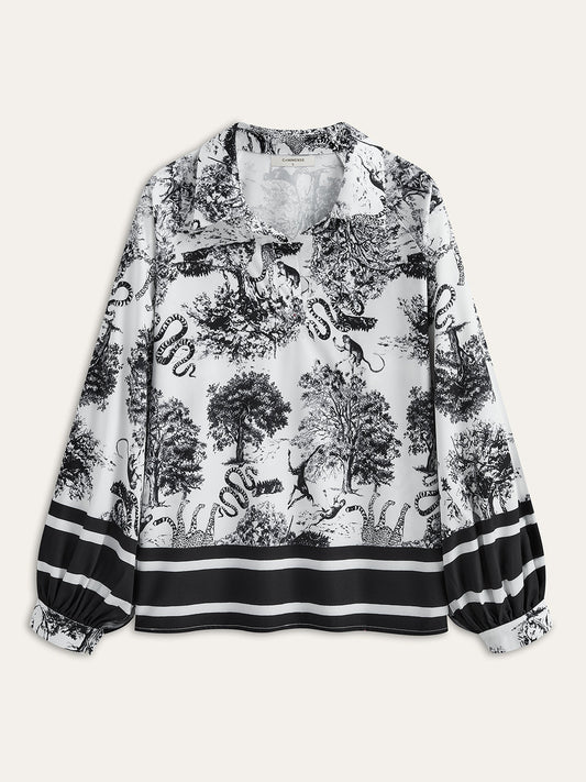 Çiçek Desenli Puf Kollu Peplum Önden Bağcıklı Bluz
