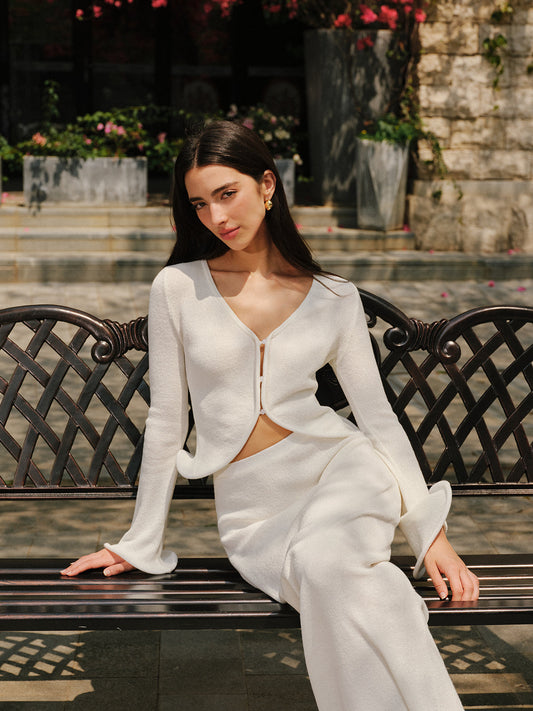 İşlemeli Kısa Üst Ve Geniş Paça Pantolon Takımı