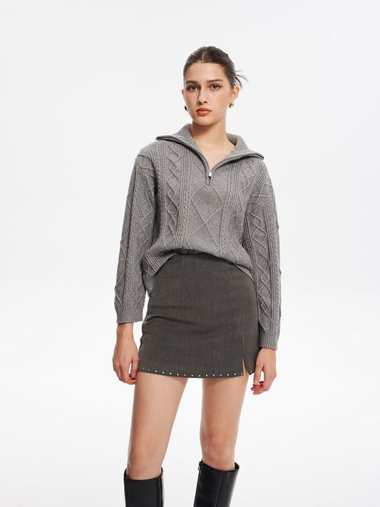 Boncuklu Kenarlı Fermuarlı Mini Etek