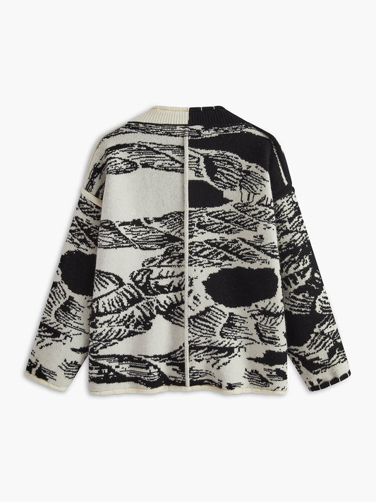 • Vintage Baskılı Büyük Boy Örgü Dış Giyim