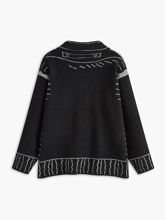 İşlemeli Kontrast Kenarlı Rahat Kazak