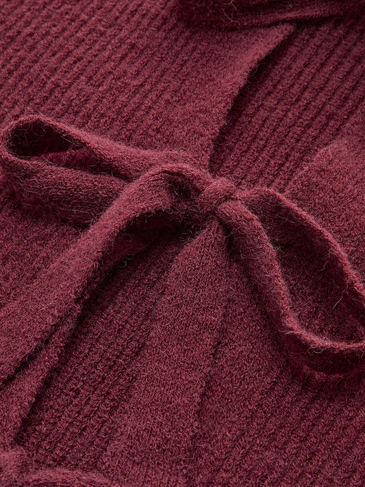 Kontrast Trim Fiyonk Dekor Örgü Dış Giyim