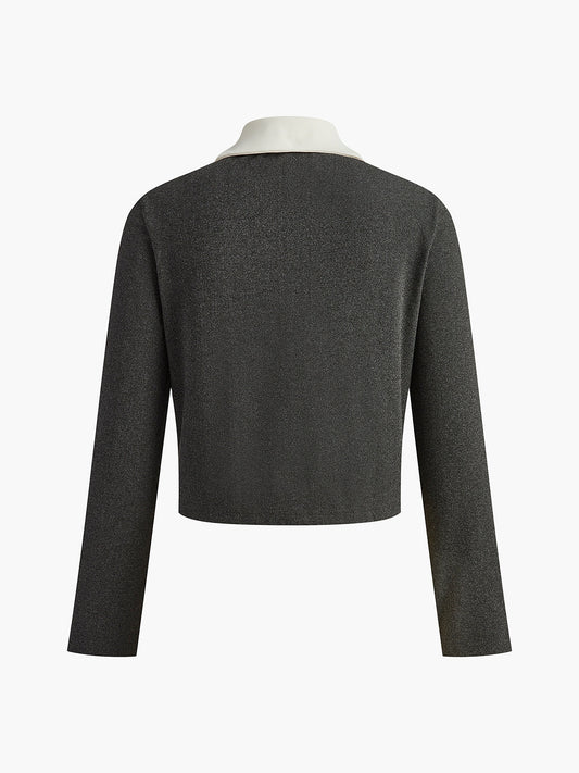 Kontrast Yaka Kadife Fermuarlı Ceket