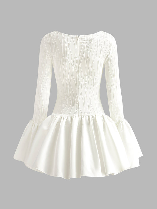 Yırtmaçlı Ve Yivli Panelli Uzun Kollu Mini Elbise
