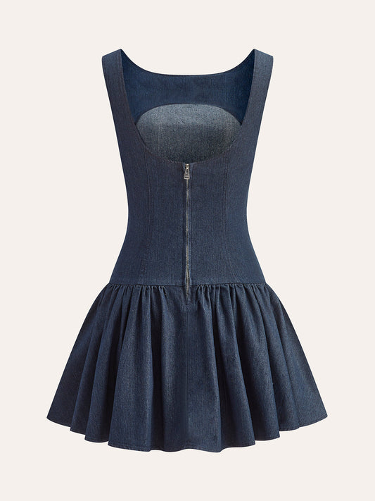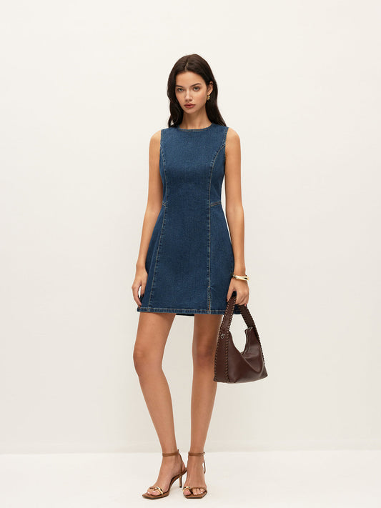 Deniz Yıldızı Düğmeli Kolsuz Mini Elbise