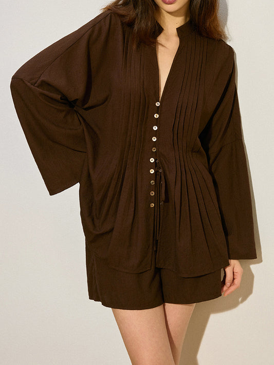 Düğmeli Ön Pamuklu Ve Keten Şort Takımı