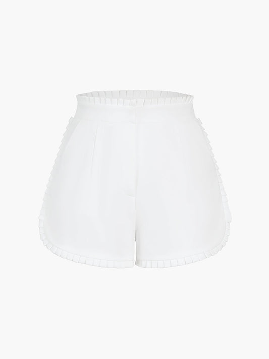Çiçek Desenli Pileli Şort Takımı Kemersiz