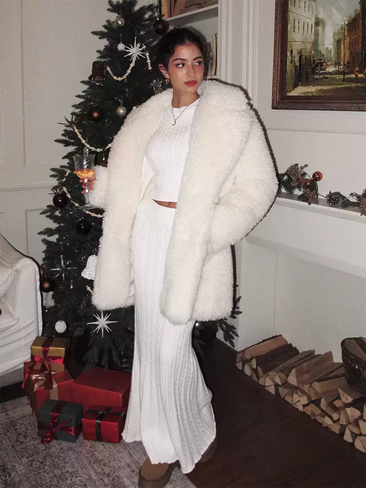 Kolsuz Ön Düğmeli Örgü Etek Takımı