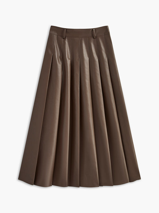 Asimetrik Patchwork Suni Deri Şifon Pileli Uzun Etek