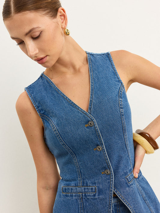 Keten Ve Pamuk Orta Bel Asimetrik Dekor Düğme Fermuarlı Etek