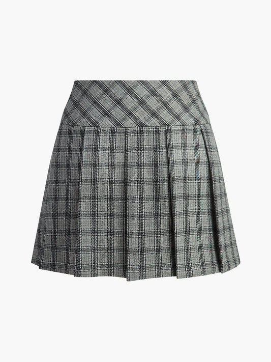 Kareli Pileli Fermuarlı Mini Etek