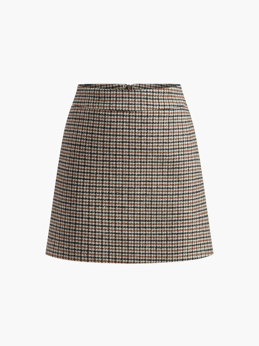 Houndstooth A Kesim Mini Etek