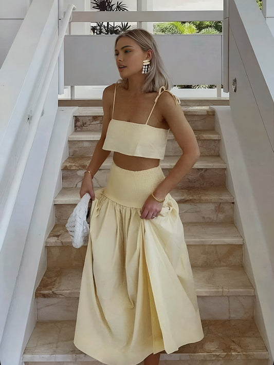 Askısız Peplum Üst Ve Uçuşan Etek Takımı