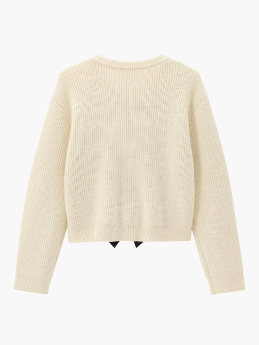 Yuvarlak Yaka Kontrast Kesim İnce Örgü Üst